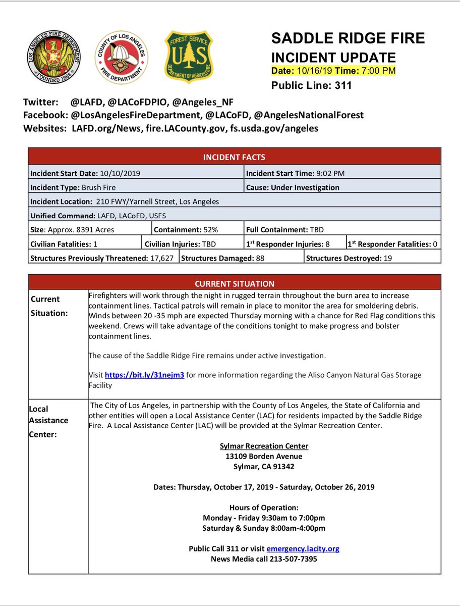 #SaddleRidgeFire Evening *Update* for Wednesday October 16, 2019pic.twitter.com/ud3rM6Pigz