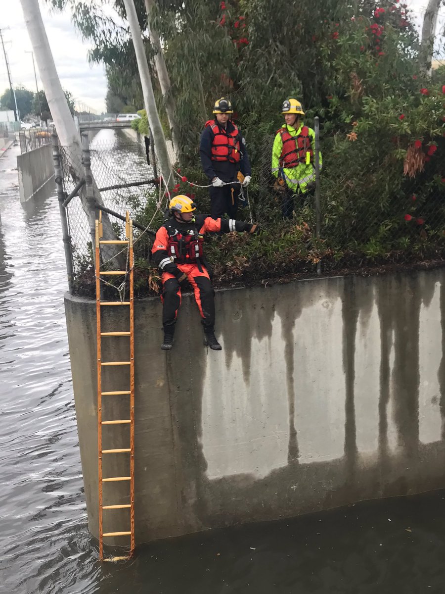 #LACoFD fire fighters and USAR members set-up to make a swift water rescue.pic.twitter.com/3j4G6r8u0B