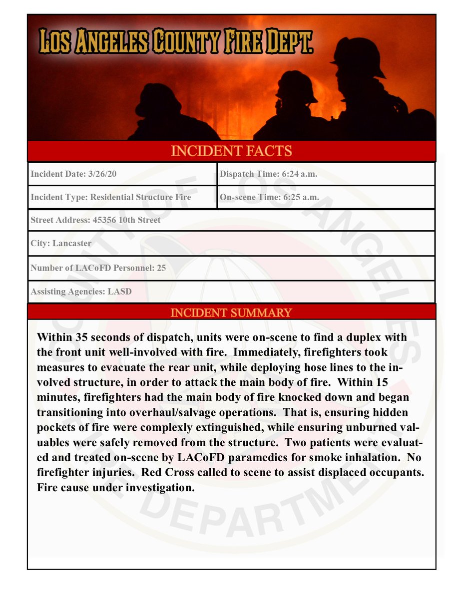 STRUCTURE FIRE WITH INJURIES | FS33 | 45356 N 10th St #Lancaster | Write-up on yesterday's residential structure fire with injuries below...pic.twitter.com/ig3a366i0c
