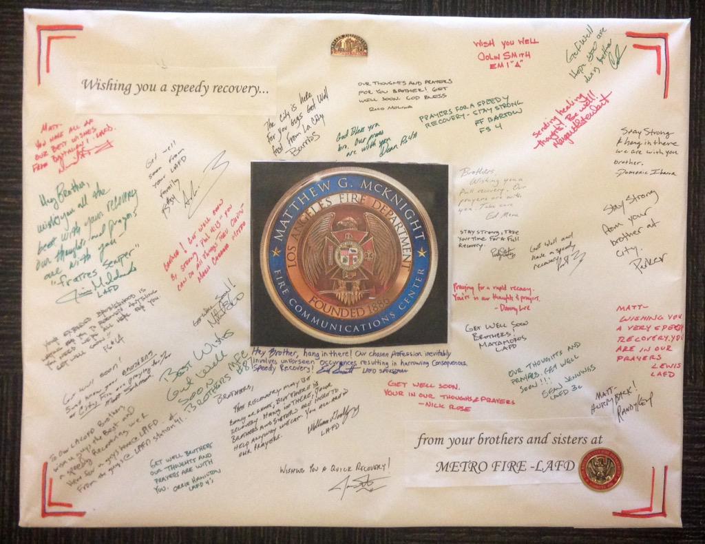 A big thank you to @PIOErikScott @LAFDtalk @LAFD Dispatch & Station 4 for the Get Well Card & for visiting our FF!https://twitter.com/PIOErikScott/status/604772313930694656 …