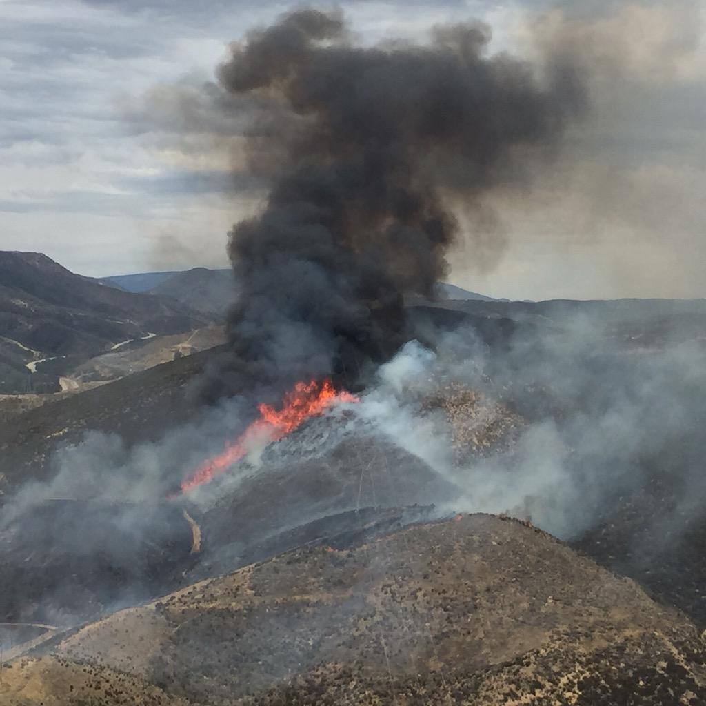 View from a #Firehawk #helicopter as they assist @Angeles_NF with #5Fire North of Castaic w/@LACoFDPIO @CHPsouthernpic.twitter.com/kJbQJw2NYC