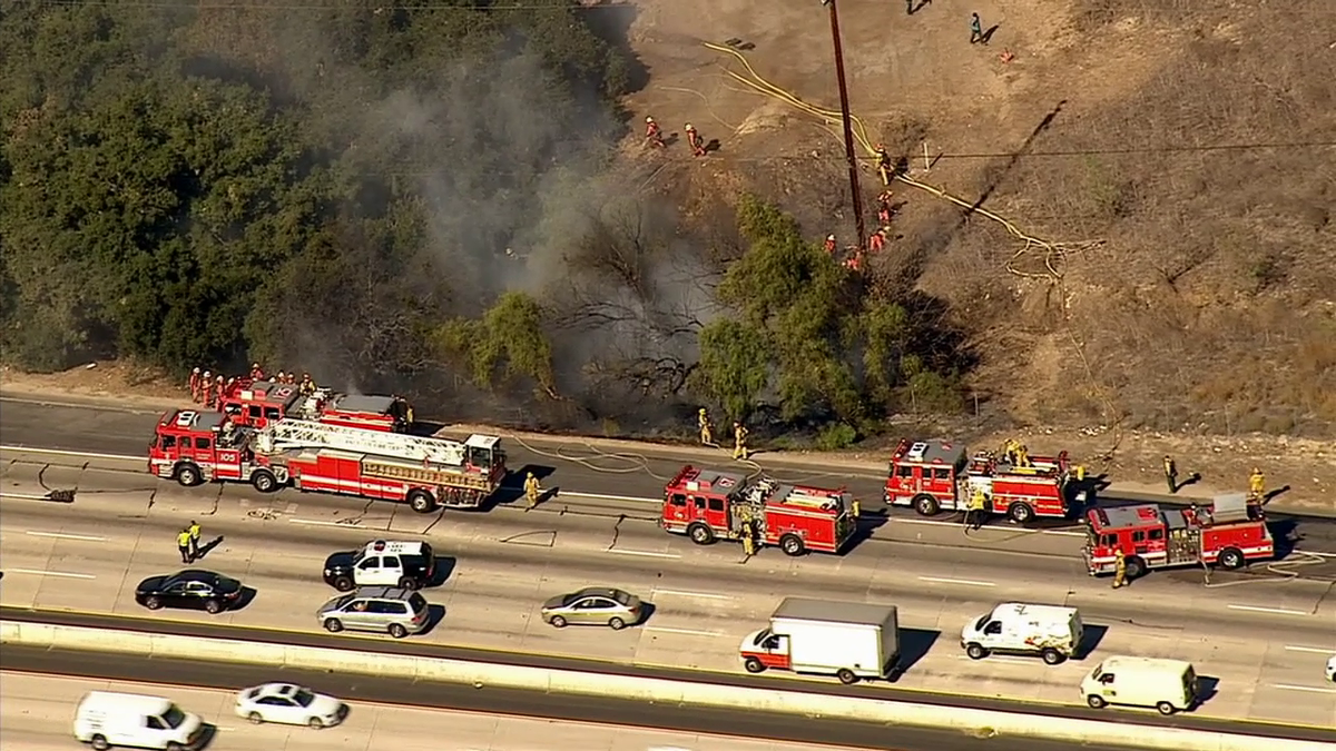 THIS JUST IN: Firefighters working on 1/4-acre brush fire along NB 101 at Parkway Calabasaspic.twitter.com/IBsvRJWTsj