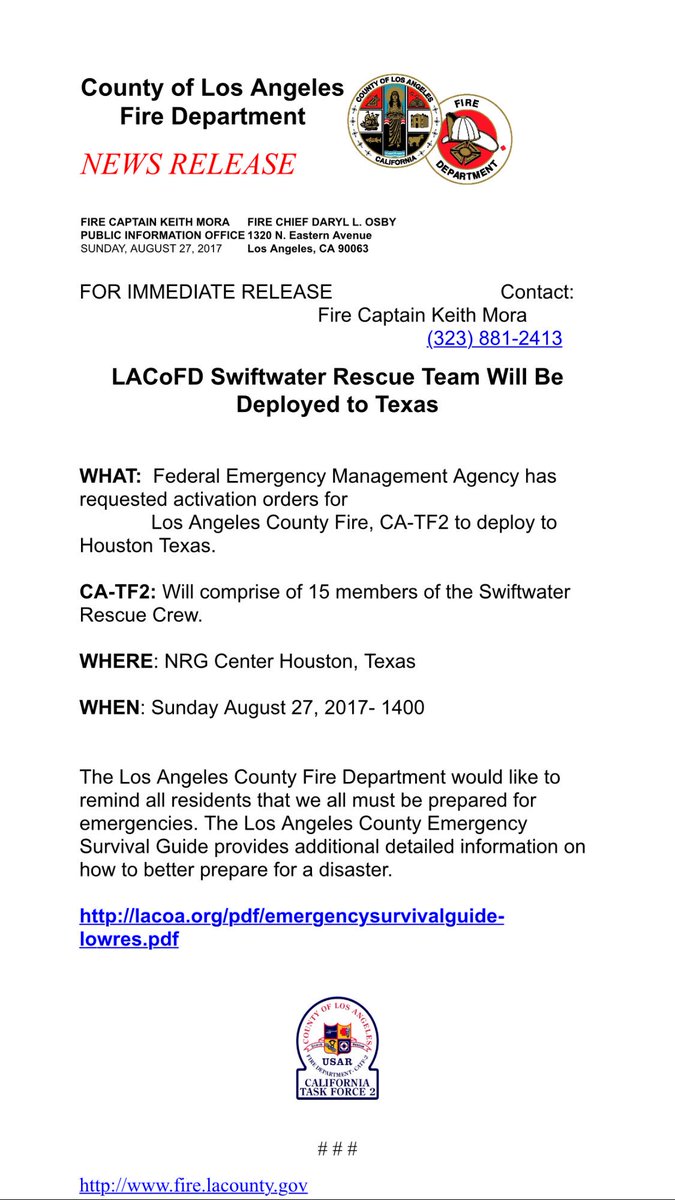 L.A. County Fire Department‏Compte certifié @LACoFDPIO 27 août 2017
