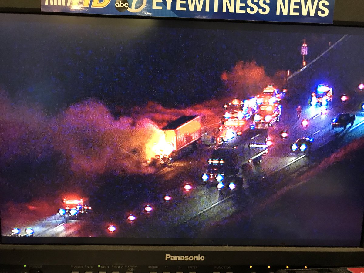 Semi truck still burning. Brush knocked down @ABC7JT pic.twitter.com/XpGZByjDxo