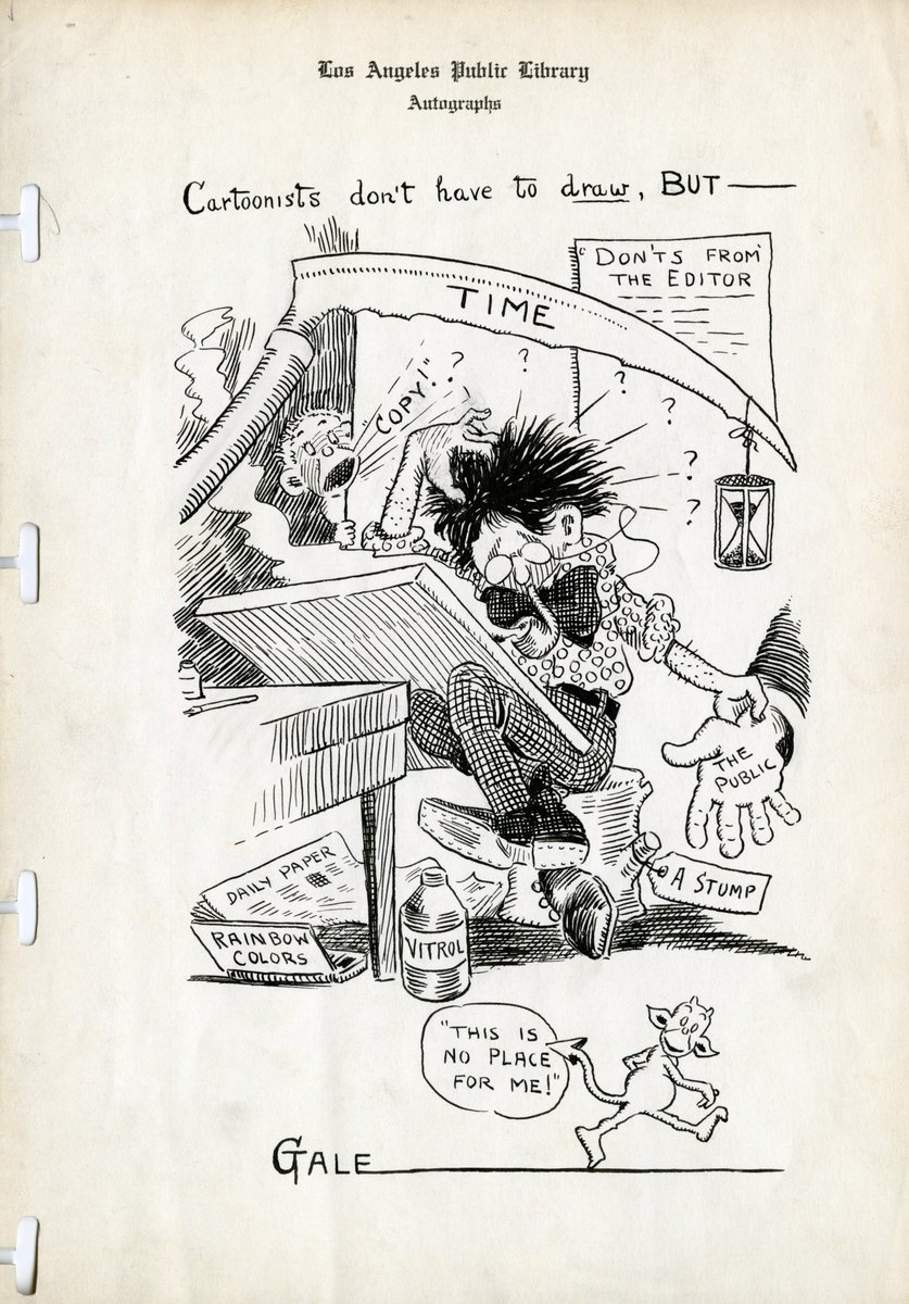 Cartoon submitted to the Autograph Collection by Edmund Waller "Ted" Gale of the Los Angeles Times in 1907. Tomorrow, visit one of 19 participating libraries to contribute your personal mark to the Autograph Collection: http://lapl.me/FAOhMSK pic.twitter.com/rbDBRgIqu2