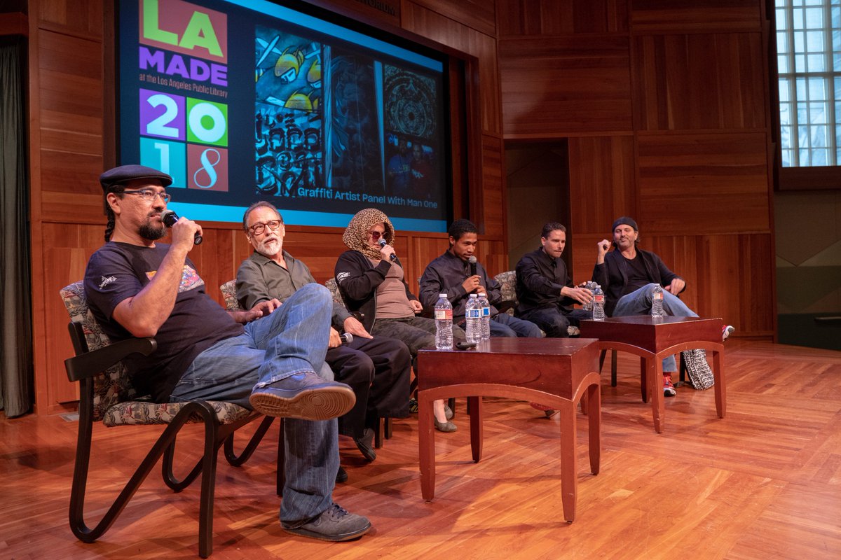 Man One moderated a discussion with other graffiti artists on the state of graffiti during a symposium at Central Library as part of the #LAMadeLAPL series. To learn more about LA Made events, visit: https://www.lapl.org/lamade pic.twitter.com/wLb1QkvWbZ