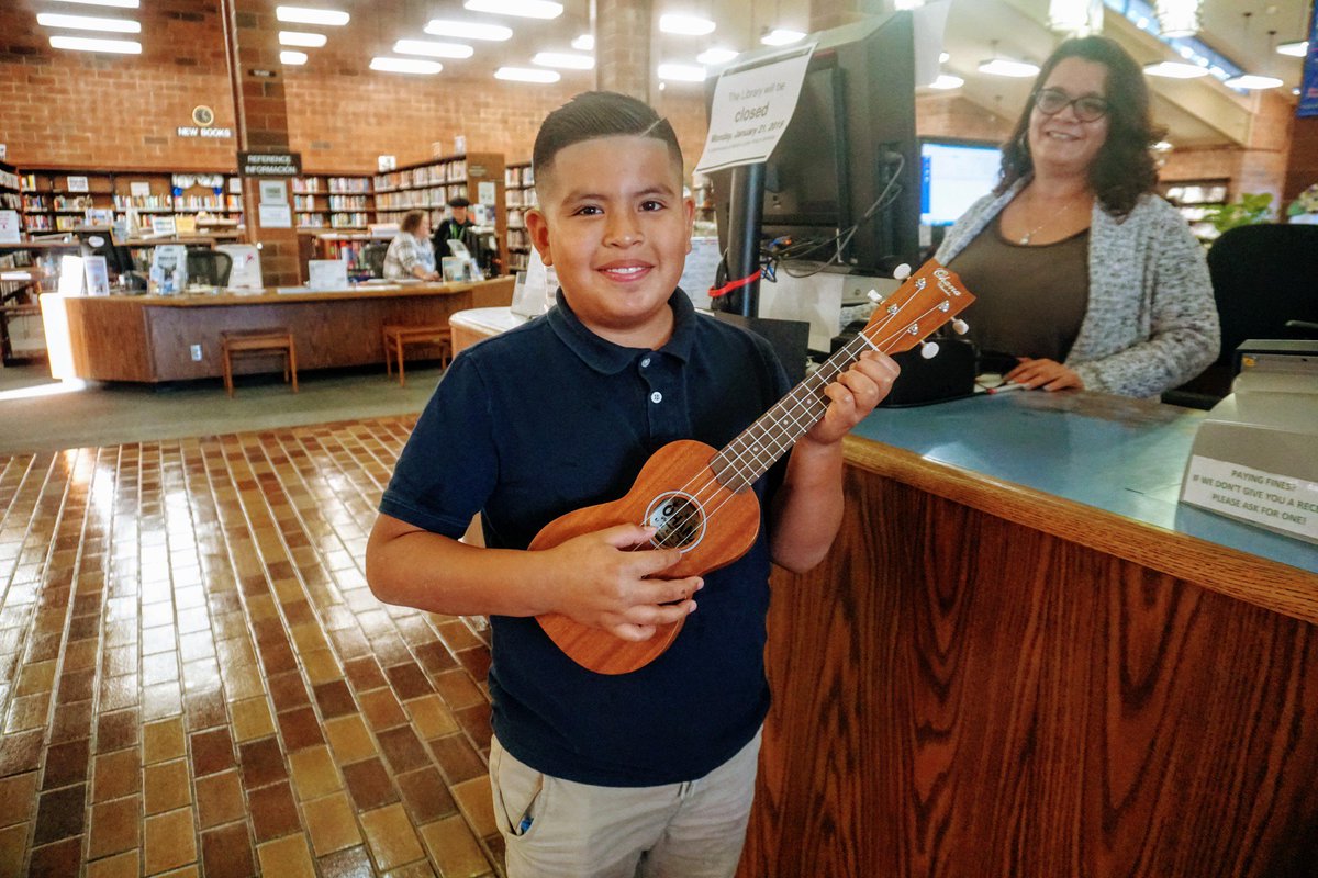 Raul is one happy camper after checking out a ukulele from the Wilmington Branch Library. Find a library near you participating in the "Uke Can Do it" program: http://lapl.me/olTtJVN pic.twitter.com/m3phPe011K