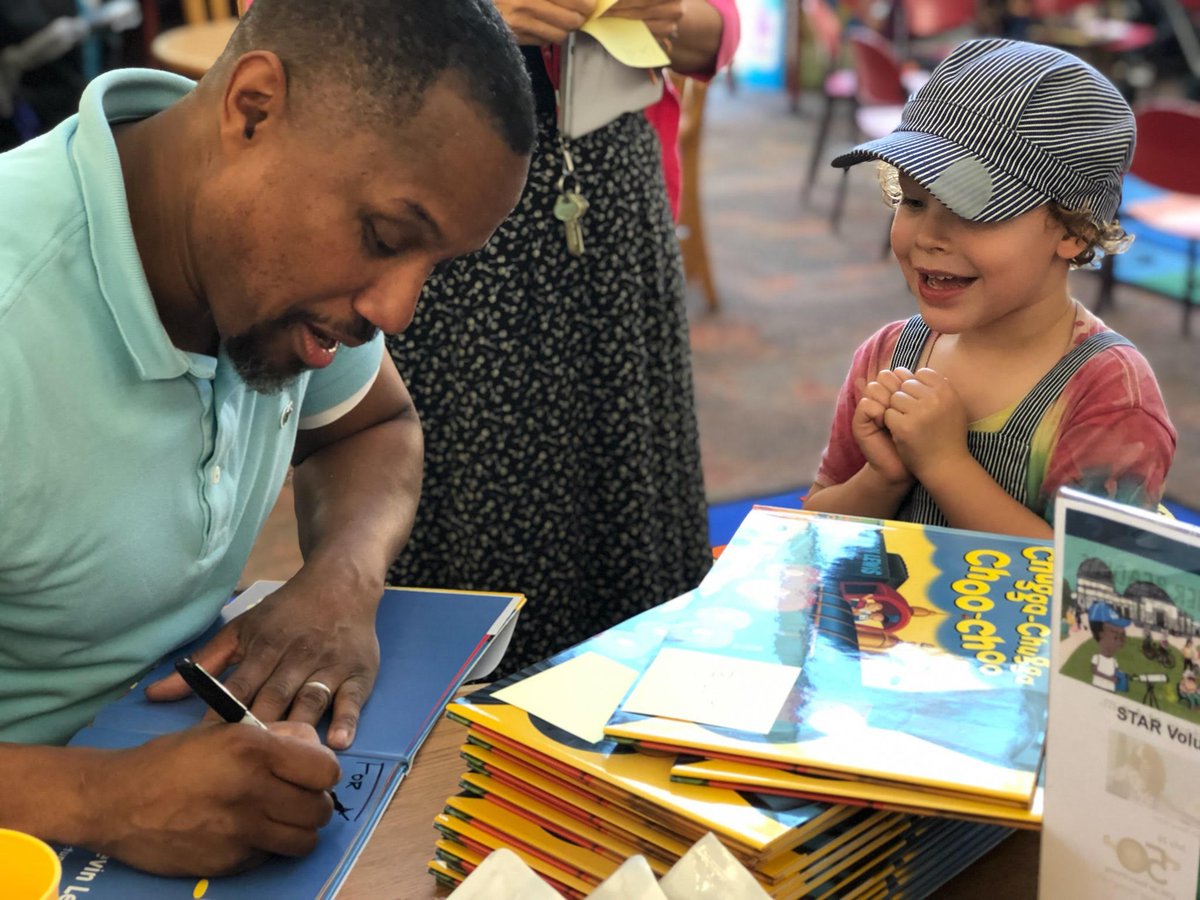 The picture says it all. Kevin Lewis connected with kids at the Hollywood Regional Library as part of our Your Author Series.pic.twitter.com/85CD4mhPzE