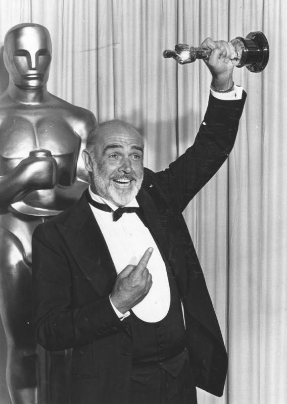 Sean Connery holds up the Best Supporting Actor Oscar he won for his portrayal of Jimmy Malone in the film "The Untouchables" at the 60th Academy Awards, presented on April 11, 1988 at the Shrine Auditorium in Los Angeles.pic.twitter.com/6jABig4jbN