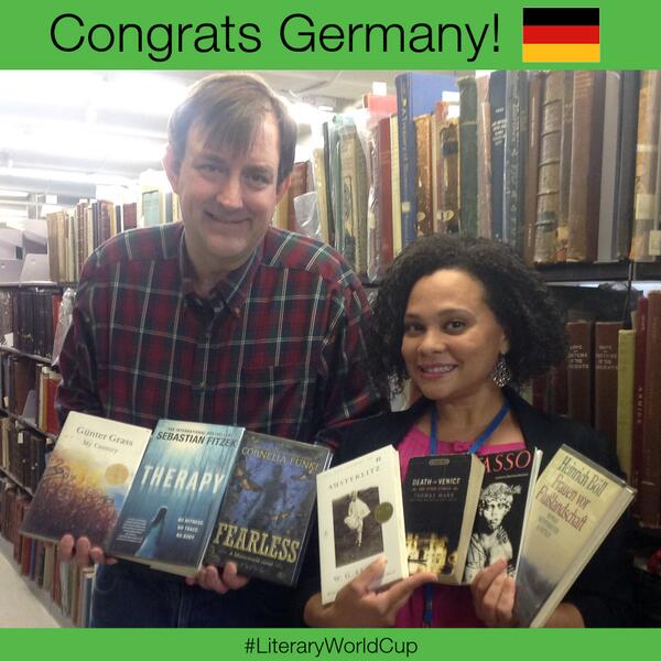 Congrats #GER! See the complete list of countries & authors featured in the #LiteraryWorldCup http://bit.ly/litworldcup pic.twitter.com/DBgpTOhqPR