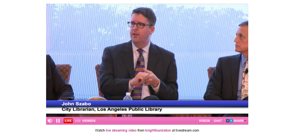 City Librarian John Szabo speaking about the future of #libraries http://knightfoundation.org/live/  #305librariespic.twitter.com/fsbMr99YnS
