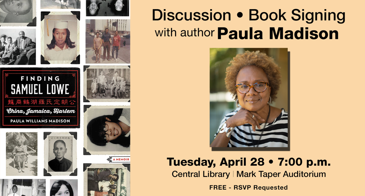 Don't miss author of @FindingSamLowe & former Board of Library Commissioner, Paula Madison http://bit.ly/1Pd9vVf pic.twitter.com/p9rV4ayg5c