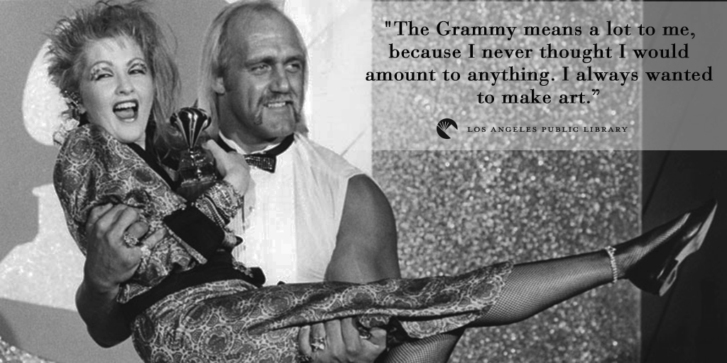 HBD @cyndilauper! Here's Cindy in the arms of Hulk Hogan after winning Best New Artist at the 1985 Grammy's.pic.twitter.com/jLbfqXKv0e