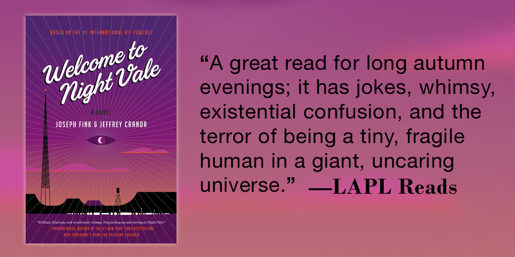 We're reading "Welcome to Night Vale" by @PlanetofFinks & @happierman http://lapl.me/fSVu5RE pic.twitter.com/XiRaT6QvGQ