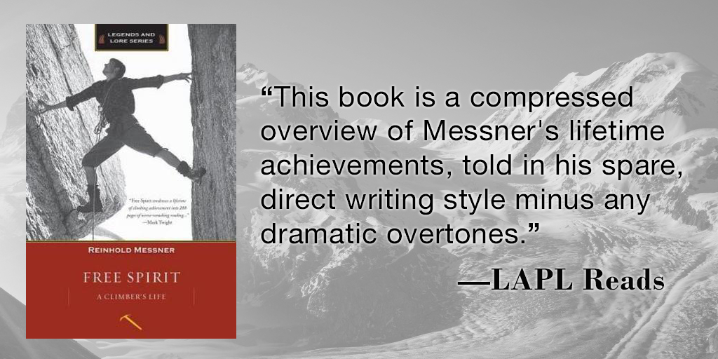 We're reading "Free Spirit: A Climber's Life" by Reinhold Messner http://lapl.me/dh4VXSu #FridayReadspic.twitter.com/X0h1kqMlaX