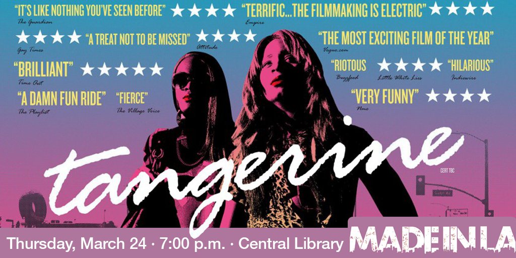 Enjoy a free screening of critically acclaimed "Tangerine" and meet film director @Lilfilm http://lapl.me/no692VO pic.twitter.com/ME6nqv11Bb