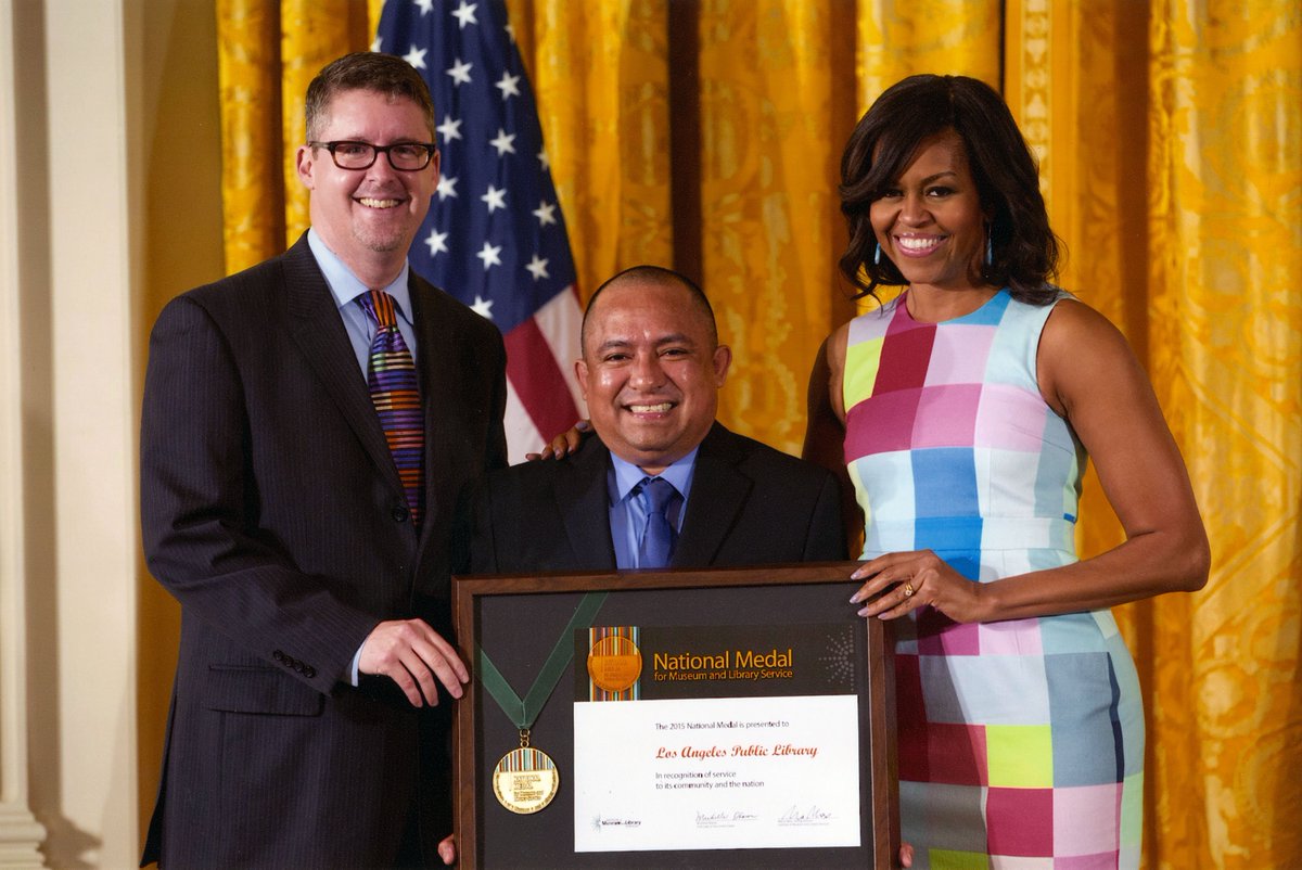 #ThrowbackThursday to a year ago this week when we received the National Medal from @FLOTUS http://lapl.me/WHgPZRk pic.twitter.com/LGKqWeI9az