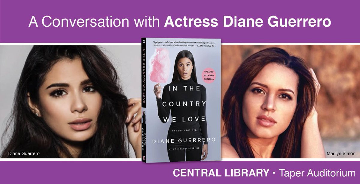 RSVP for a conversation and book signing with Diane Guerrero author of "In the Country We Love: My Family Divided" at Central Library on April 7: http://lapl.me/Gqh3h4S pic.twitter.com/QPZXyHWhIf