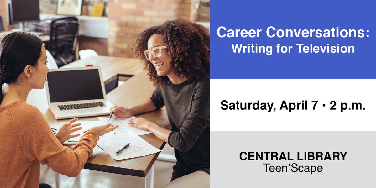 Career Conversation series in Teen'Scape continues tomorrow with a look at writing for television: http://lapl.me/8RewuCw And, if you've missed any conversation in the series catch up with our podcast: http://lapl.me/cbbBWRa pic.twitter.com/ie0esXKNsc