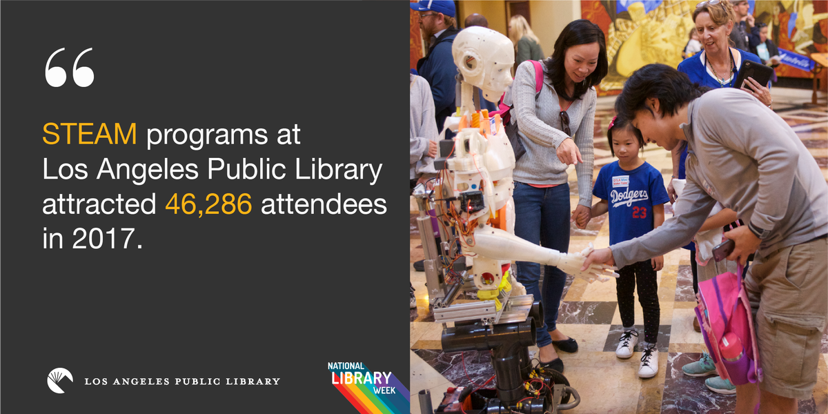 Science Technology Engineering Art Math programs at Los Angeles Public Library inspired more than 40,000 people in 2017: http://lapl.me/pfcB7Iv pic.twitter.com/eAYcoQY8pP