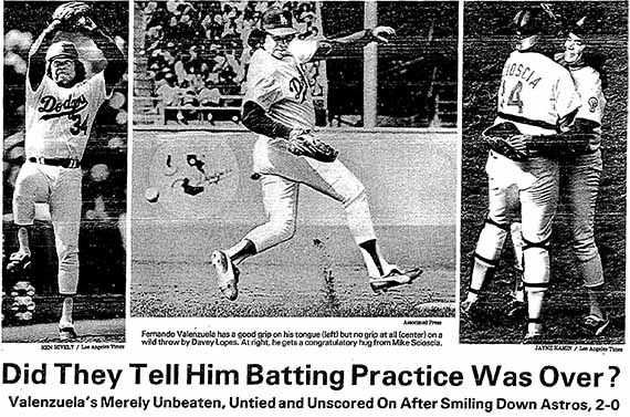 In 1981, L.A. Dodger Fernando Valenzuela became the 1st rookie ever to pitch an opener for the Dodgers. They beat the Astros 2-0. You can read about such milestones in the L.A. Times Historical Archive, free with your library card. http://lapl.me/abLAPJW pic.twitter.com/jWXQgwSerK