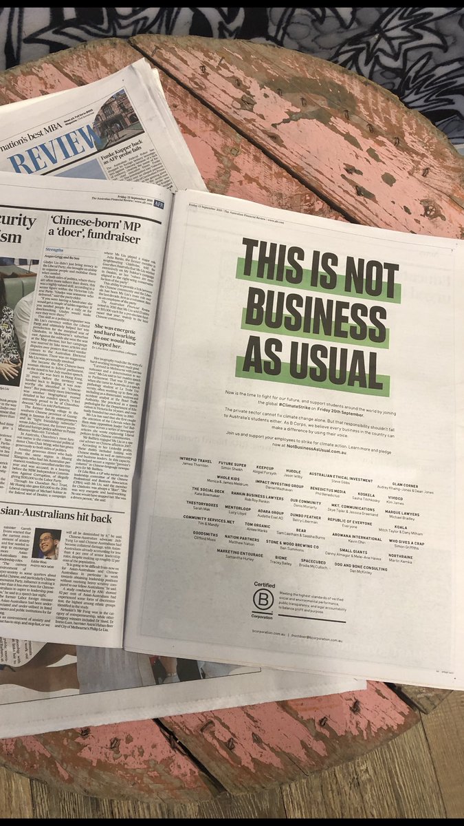 On Global #ClimateStrike Day, @BCorpANZ @Intrepid_Travel @KeepCup @myfuturesuper & others won’t be doing business as usual.