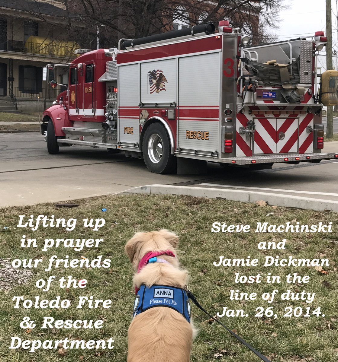 @ToledoFire friends, Steve and Jamie's families, and the loved ones of fallen firefighters everywhere. As always, we continue to pray for the safety and protection of all first responders.#NeverForget#Heroes#Firefighters#Prayers@K9ComfortDogspic.twitter.com/qdViXaqLFj