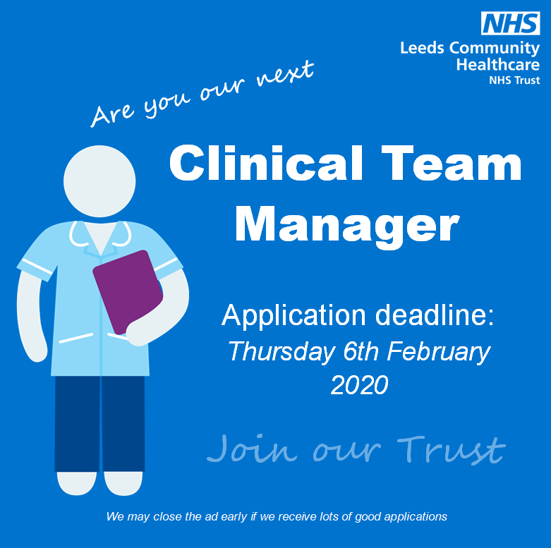 There's still time to apply for the Clinical Team Manager vacancy within the Leeds Integrated Discharge Service. Find out more about the role and the service on