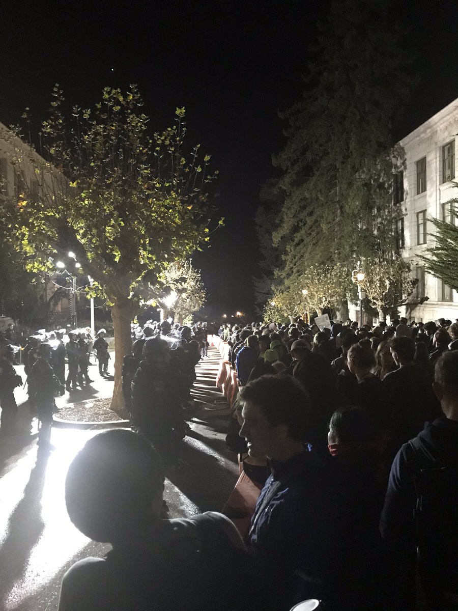 People are putting their hands up on either side of the line of cops in front of the north side of Wheelerpic.twitter.com/1N04fr72En