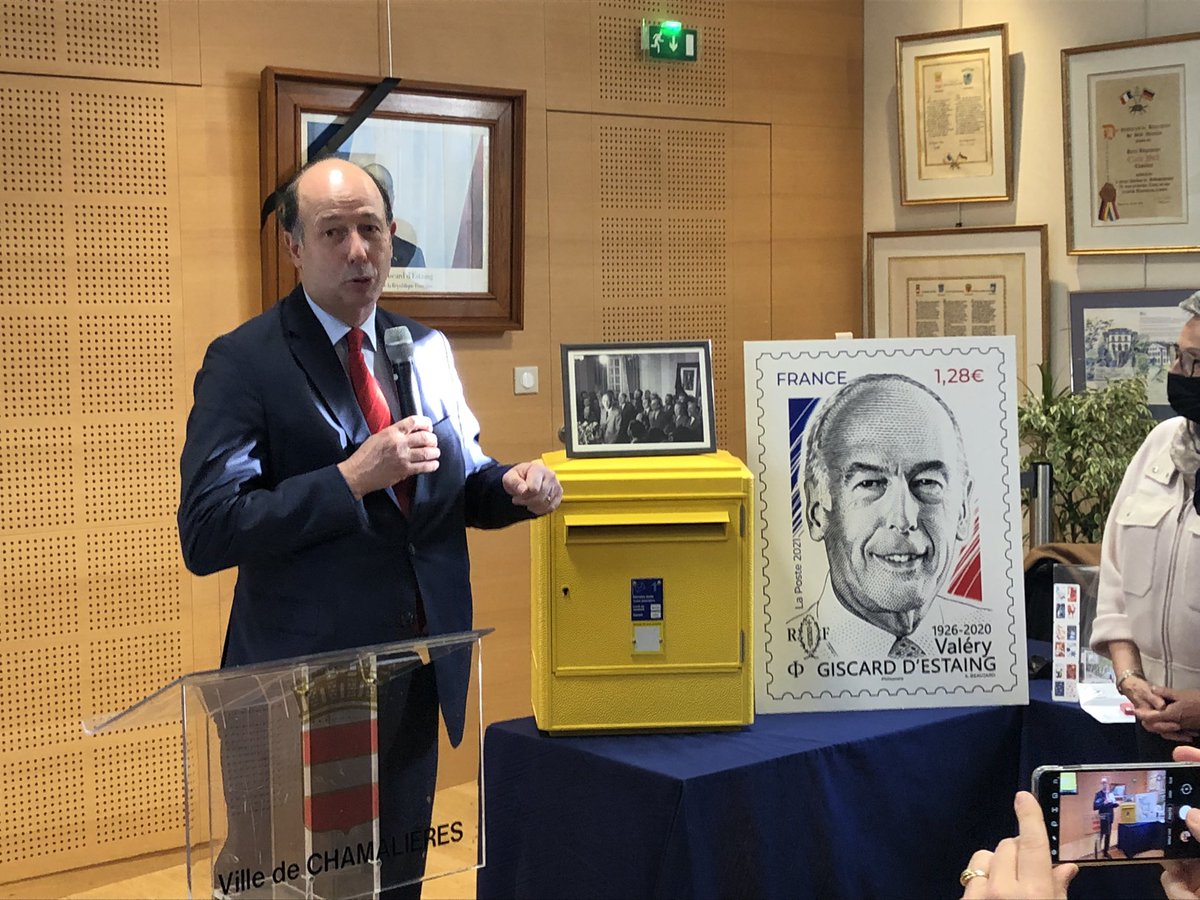 Le bureau d’émission 1er jour a été placé dans la Salle du Conseil municipal - le lieu même de la déclaration de candidature en 1974, point de départ d’une campagne victorieuse et d’un septennat de modernisation de la Francehttps://twitter.com/VChamalieres/status/1461733053466824710 …