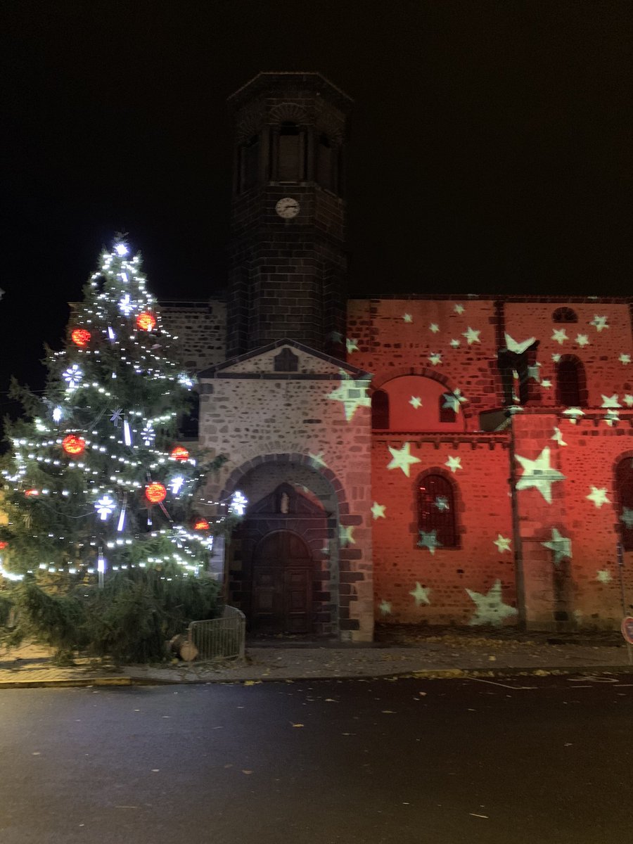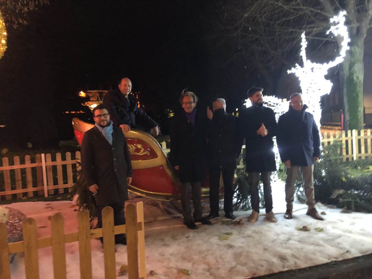 en rouge et blanc après l’allumage par le Maire @LGiscardEstaing et les élus des illuminations de fin d’année.