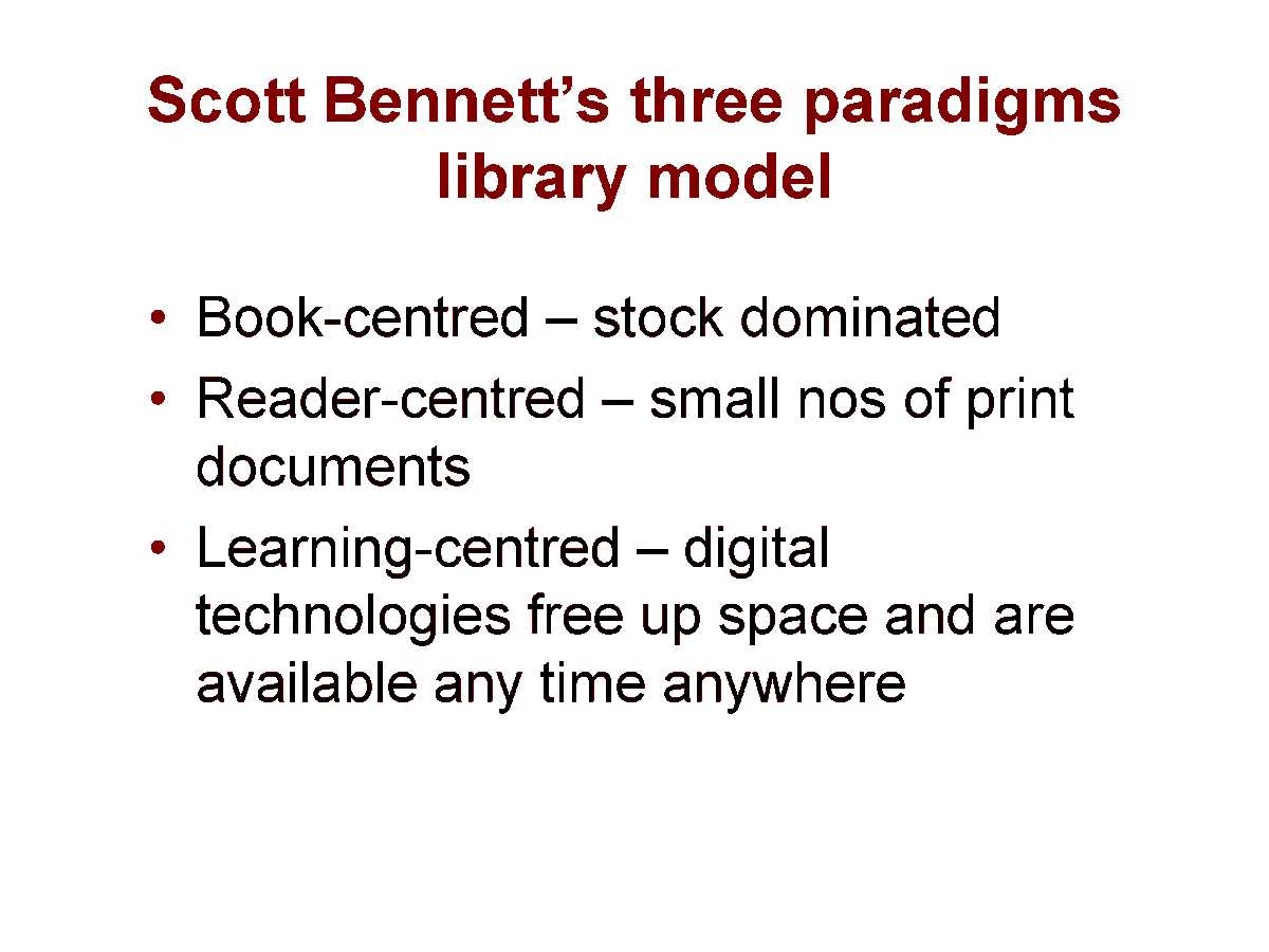 #library space - Scott Bennet’s three library design paradigms: book-centered, reader-centered and learning centeredpic.twitter.com/8hX011wGyt