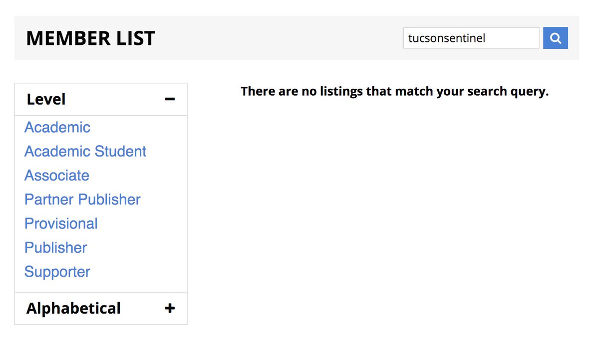 Though man oh man you'd really be doing me and others a solid by letting people search your member directory by state or site name — which I have to think is 99% of what people want to find "dylan smith" = yay, "tucson," "tucsonsentinel," "arizona" = boo https://www.lionpublishers.com/member/ pic.twitter.com/3F7WhVHwTr