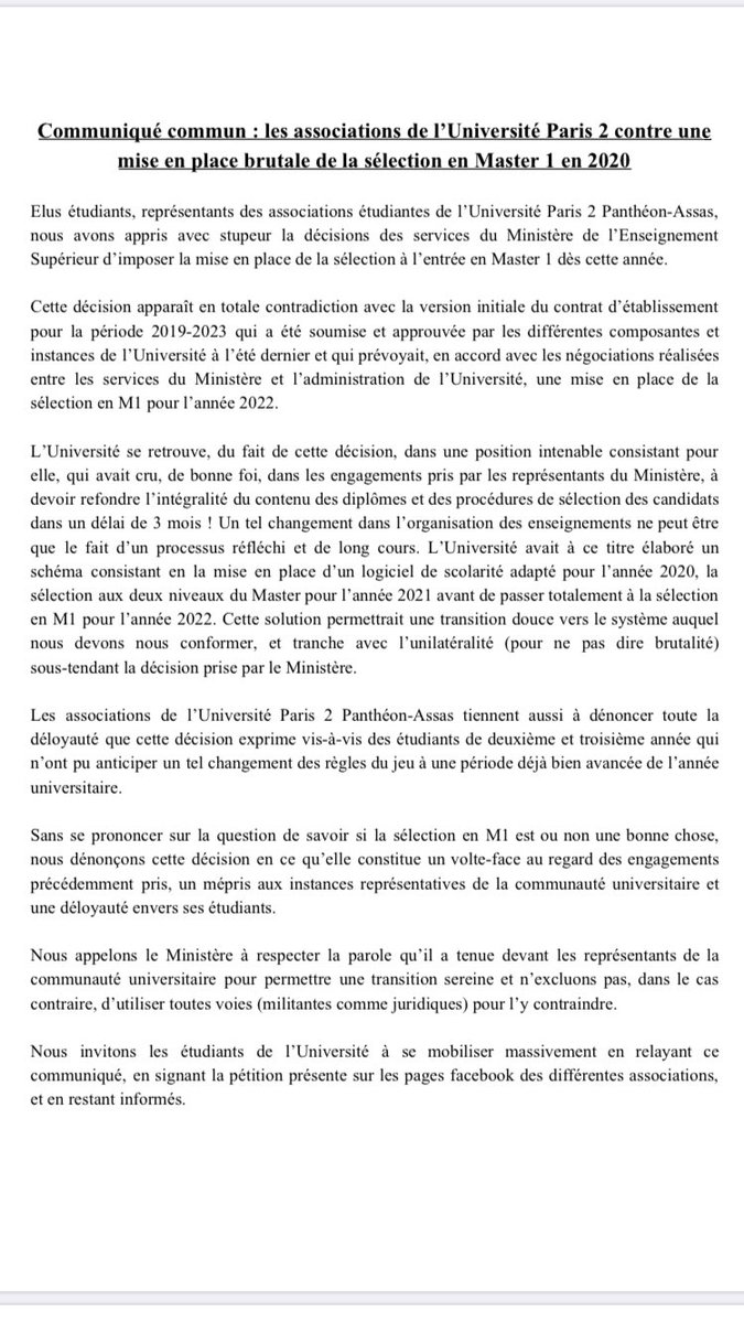@AssasParis2, qui demandent le respect des engagements pris par le ministère@sup_recherche sur la sélection en M1. On ne peut imposer aux étudiants un dispositif auquel ils ne sont pas préparés.@AllianceAssas@AssasNet@UGES_BDE_Assaspic.twitter.com/cAVtp0kNS0