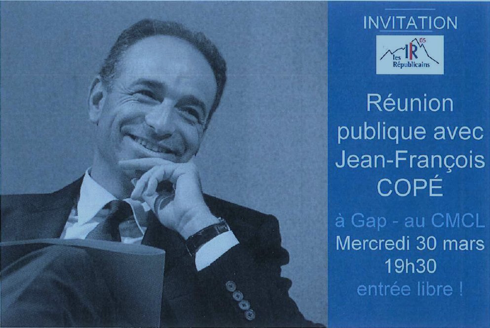 #Primaire2016 Réunion publique de@jf_cope demain à 19h30 au CMCL de#Gap. Entrée libre !@diciradio@lemedia05pic.twitter.com/c9obflQLqq