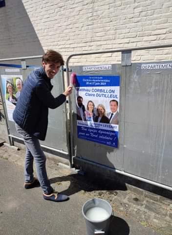 Opération collage d'affiches dans les 24 communes de notre canton d'Annoeullin.
