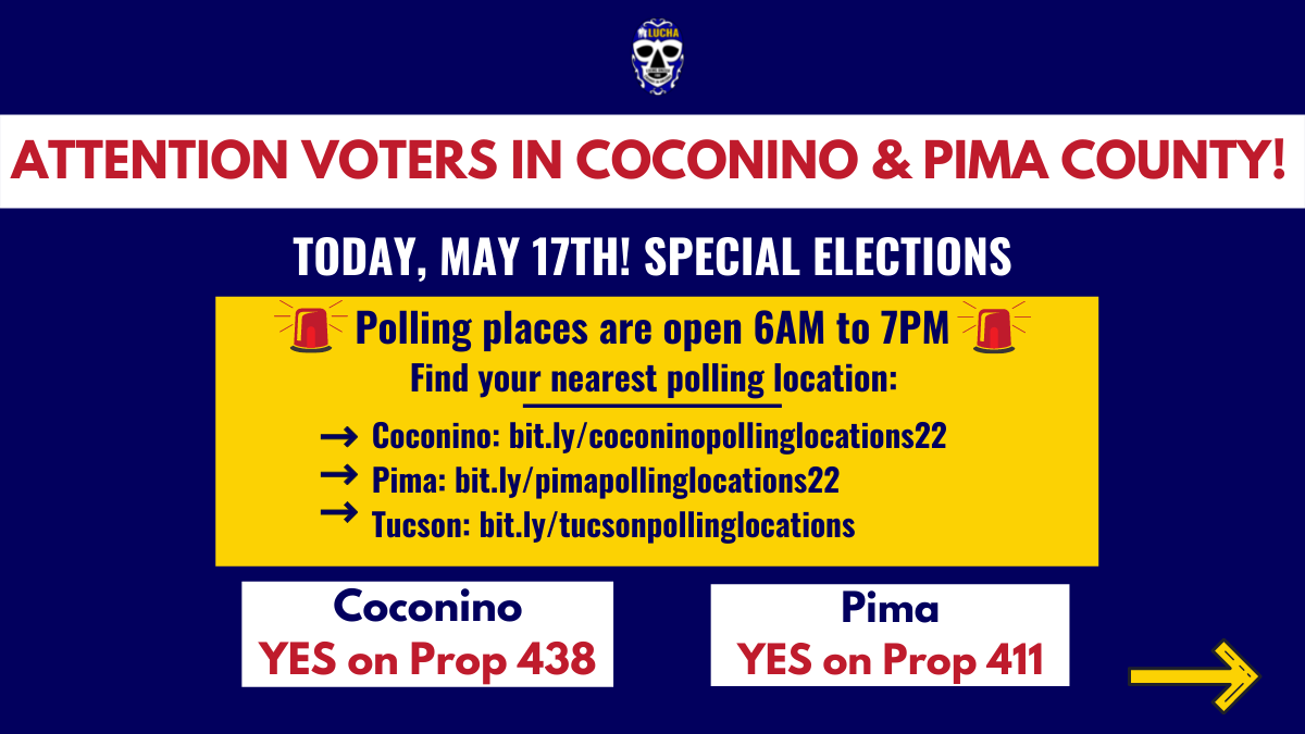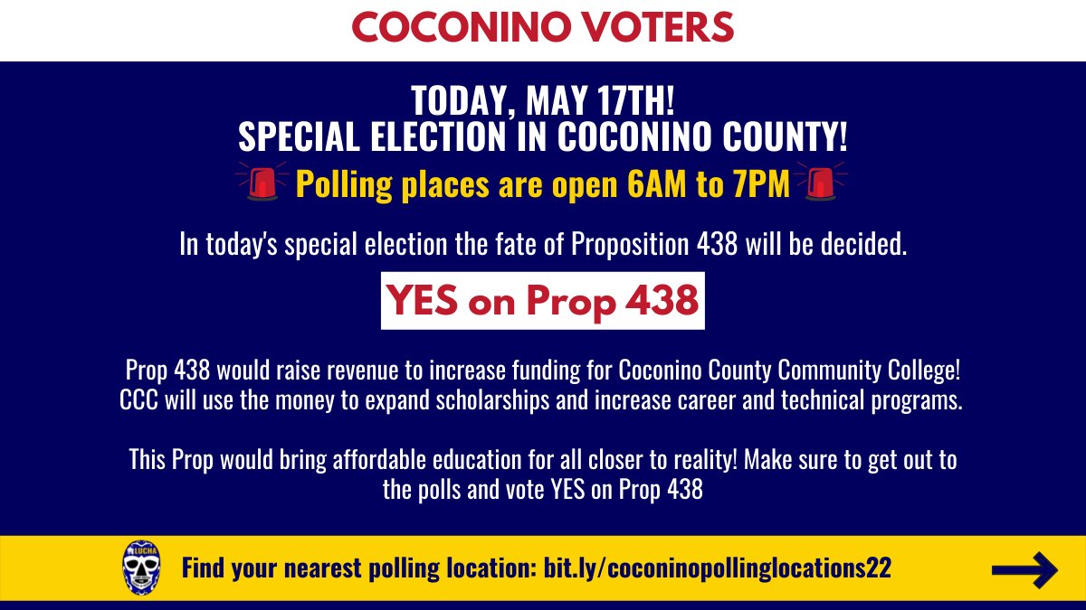 Voters in Coconino and Pima county! Special elections are today - 2 props on the ballot allocate funding to our public services like education; props 438 and 411