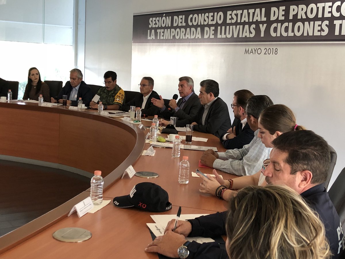Esta tarde en Puebla acompañe al Gob. @TonyGali y al Srio de Gobierno @DiodoroCarrasco a la sesion del Consejo Estatal de Protección Civil, para dar a conocer el inicio de la temporada de lluvias y ciclones tropicales 2018pic.twitter.com/Df3M4olz0Y