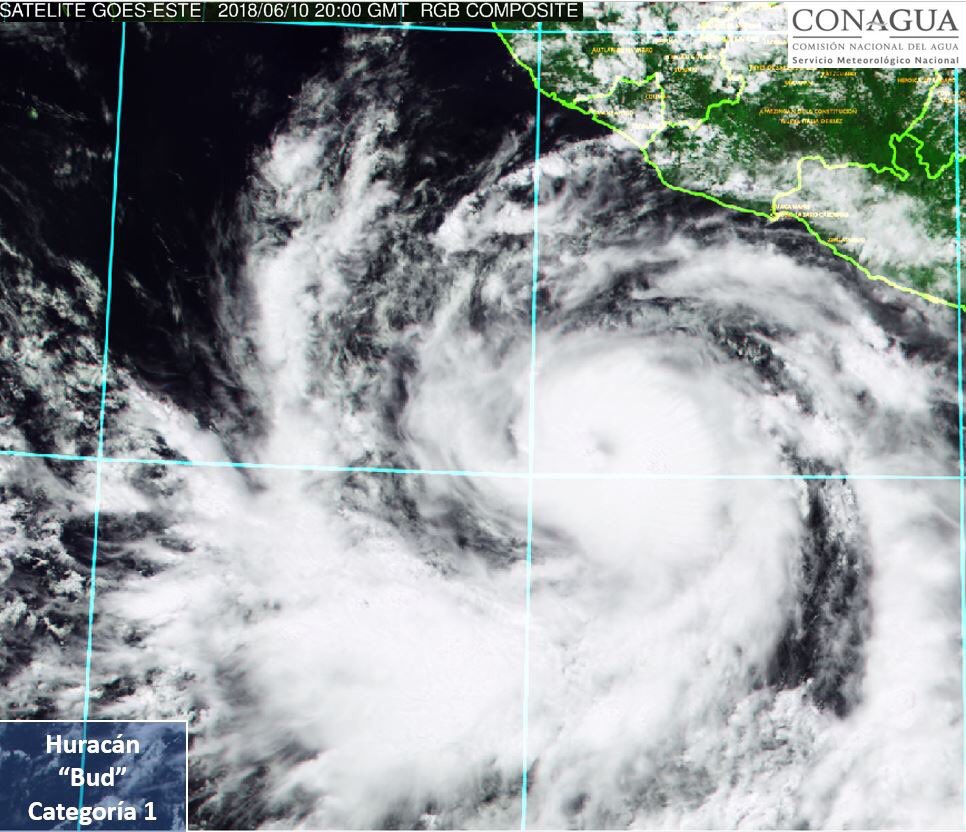 .@conagua_clima informa que #Bud se ha intensificado a #Huracán categoría 1, se localiza a 410 km al sur de Manzanillo, Colima y se desplaza hacia el noroeste, sigue las recomendaciones de @PcSegobpic.twitter.com/IoeyqnzOwc