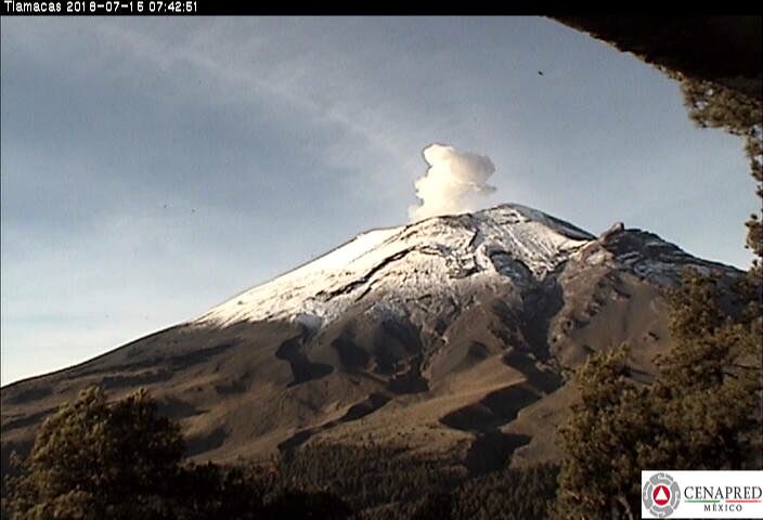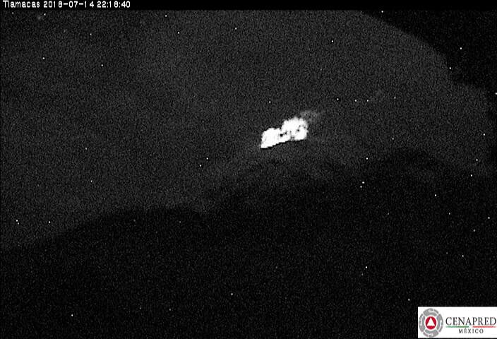 En 24 hrs el #Volcán #Popocatépetl registró 21 exhalaciones de baja intensidad acompañadas de vapor de agua, gas y ligeras cantidades de ceniza; explosión a las 22:17 con columna de 800m; 3 sismos volcanotectónicos y 180 minutos de tremor armónico. #Semáforo en #AmarilloFase2.pic.twitter.com/H9cpyaMXRp
