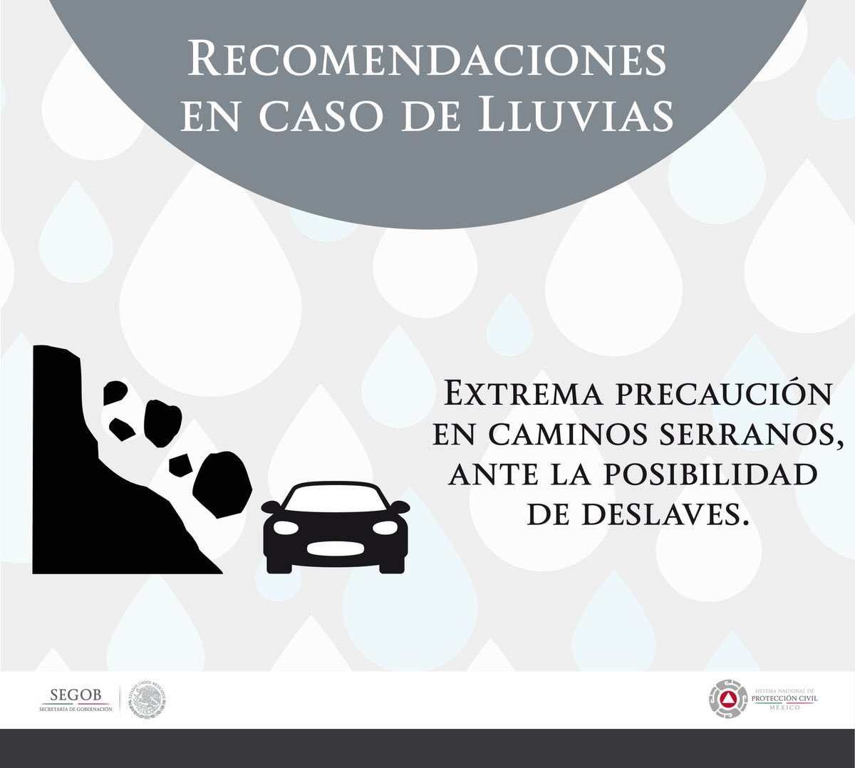 Ante el pronóstico de lluvias: 1️⃣Mantente informado en @conagua_clima 2️⃣Ten a la mano los teléfonos de emergencia 3️⃣Atiende las indicaciones de las autoridades en tu localidad 4️⃣Sigue las recomendaciones de @PcSegob 5️⃣Elabora un plan de #ProtecciónCivilpic.twitter.com/D3Ji8pjqKX