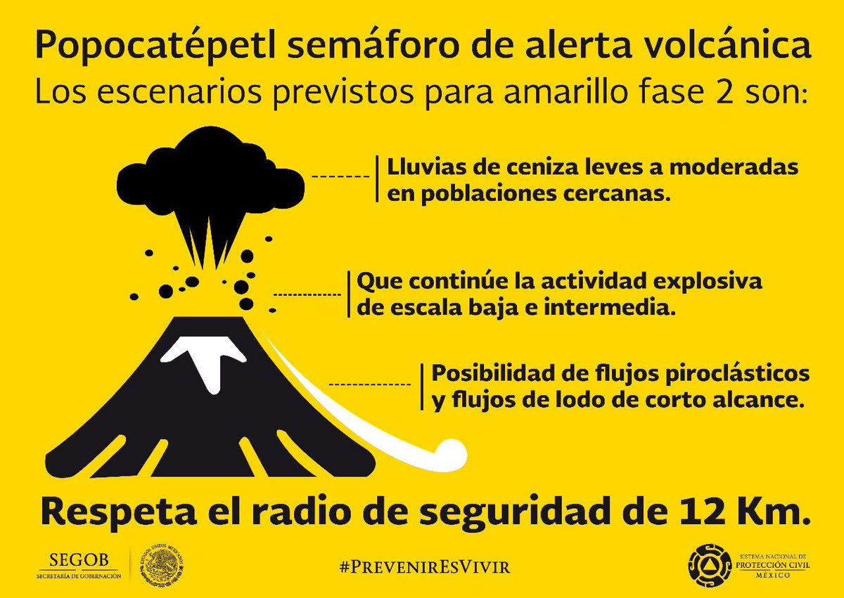 A las 15:24 se registró nuevamente actividad en el #Popocatépetl generando una columna de vapor de agua, gas y moderado contenido de ceniza de aproximadamente 2,000 mts. El #CENAPRED exhorta a respetar el radio de seguridad de 12km. #PrevenirEsVivirpic.twitter.com/luEY34yEjQ