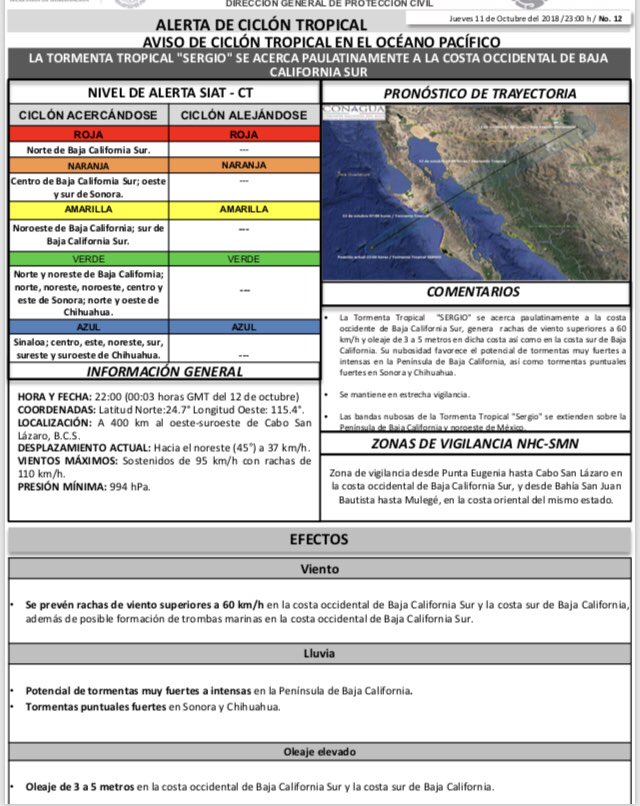 Fase de Acercamiento #SIAT-CT #AlertaVerde por Tormenta Tropical #Sergio para Norte y noreste de Baja California; norte, noreste, noroeste, centro y este de Sonora; norte y oeste de Chihuahua.pic.twitter.com/j6SmRCaZiR