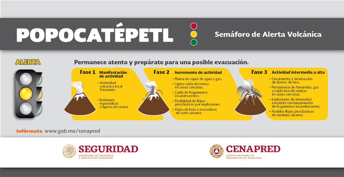 En caso de #CaídaDeCeniza por actividad del #Popocatépetl, atiende las siguientes recomendaciones; el semáforo de #AlertaVolcánica continúa en #AmarilloFase2 #PrevenirEsVivirpic.twitter.com/nn6LjVvCuX