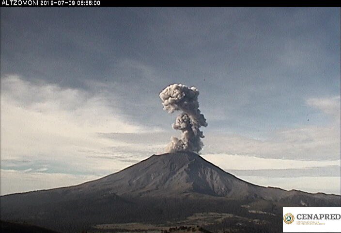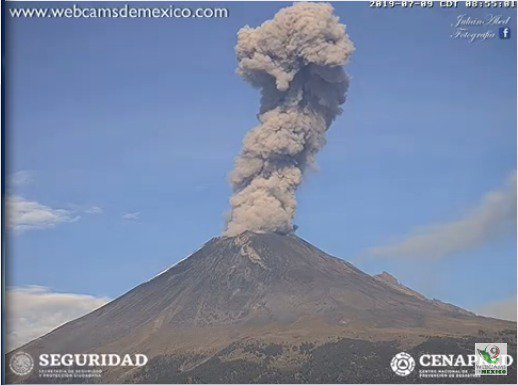 #Exhalación del #Popocatépetl a las 08:52 horas, acompañada de vapor de agua y gas con moderado contenido de ceniza y una altura de 1,500 metros en dirección noroeste. El semáforo de #AlertaVolcánica permanece en #AmarilloFase2pic.twitter.com/jqPr4B5Kyp