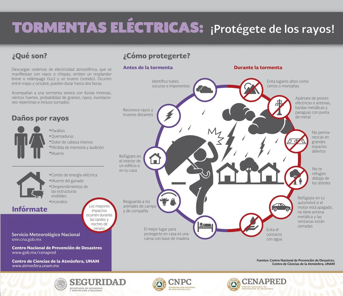 Ante una #TormentaEléctrica evita permanecer en espacios amplios o abiertos, busca refugio en edificios y aléjate de árboles #PrevenirEsVivirpic.twitter.com/g44JVxAiIT