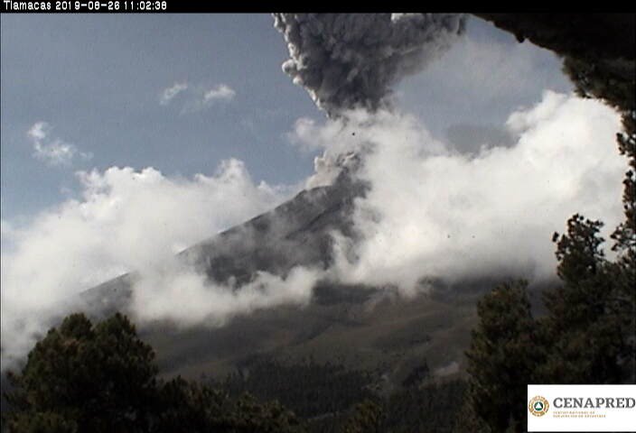 #Exhalación del #Popocatépetl a las 11:00 horas, con contenido moderado de ceniza y una altura de 2,000 metros en dirección al oeste. El semáforo de #AlertaVolcánica permanece en #AmarilloFase2 #CENAPRED #PrevenirEsVivir @CNPC_MXpic.twitter.com/kQ6jeD21zL