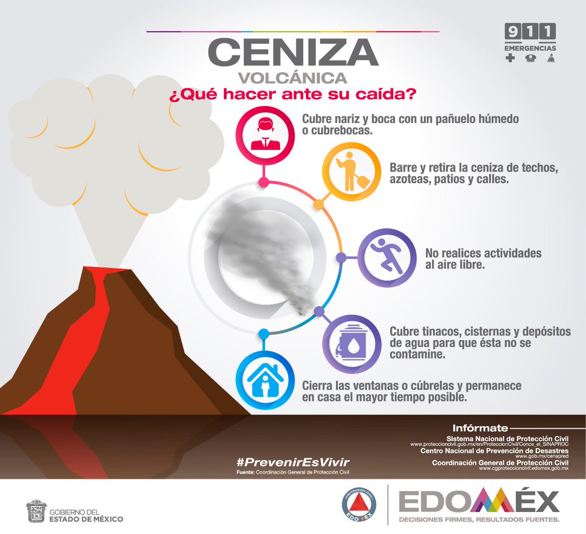 Se reporta #CaídaDeCeniza en los municipios de #Tepetlixpa y #Tlalmanalco, evita realizar actividades al aire libre y cubre nariz y boca con un pañuelo húmedo o cubrebocas #PrevenirEsVivirpic.twitter.com/6879oOXMDJ