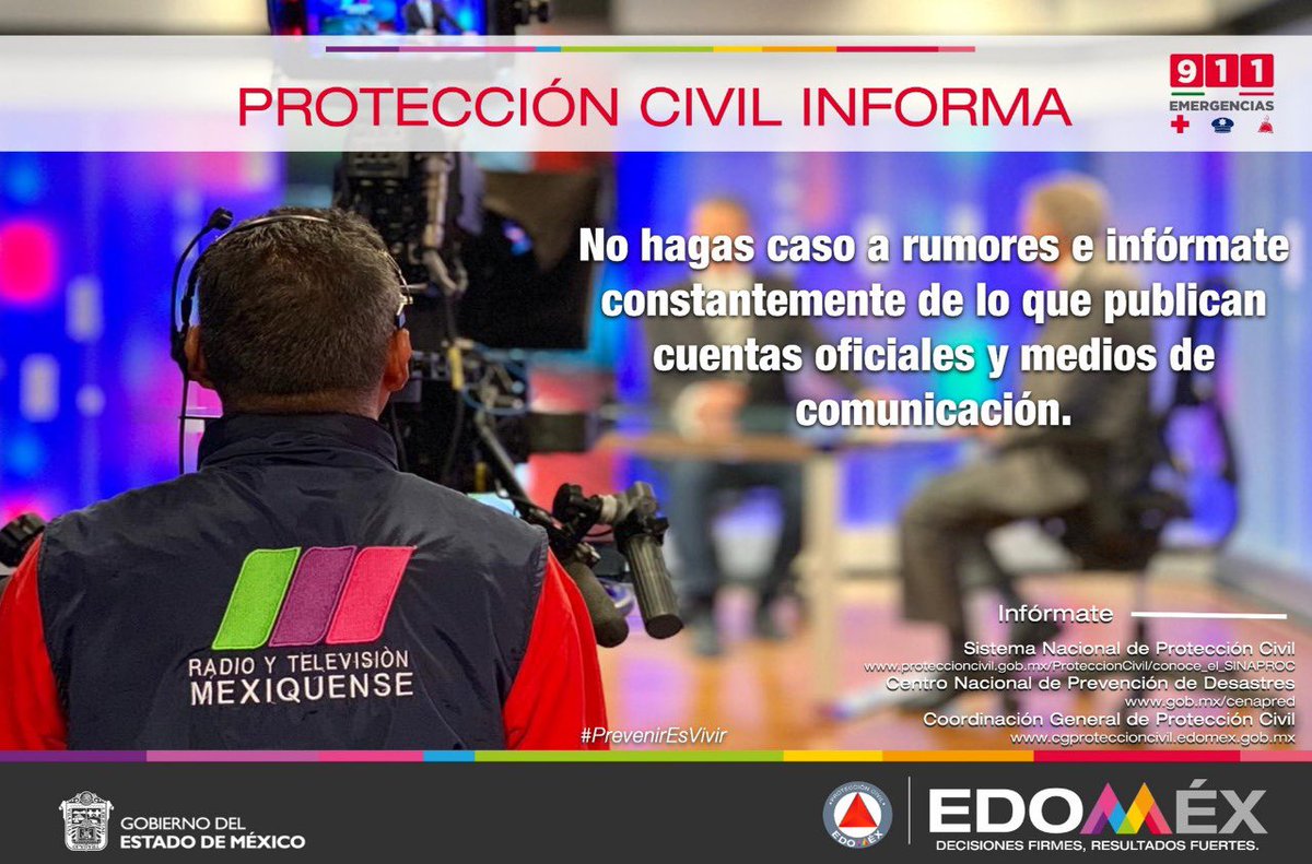 Te invitamos a seguir las cuentas oficiales de #ProtecciónCivil @pciviledomex, no hagas caso rumores #PrevenirEsVivirpic.twitter.com/eleKPdpVAu