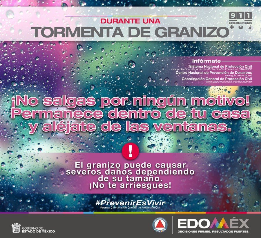 El #Granizo puede causar severos daños, dependiendo de su tamaño, no te arriesgues, permanece en un lugar techado al igual que tus #Mascotas #PrevenirEsVivirpic.twitter.com/QrqHsJyKxB